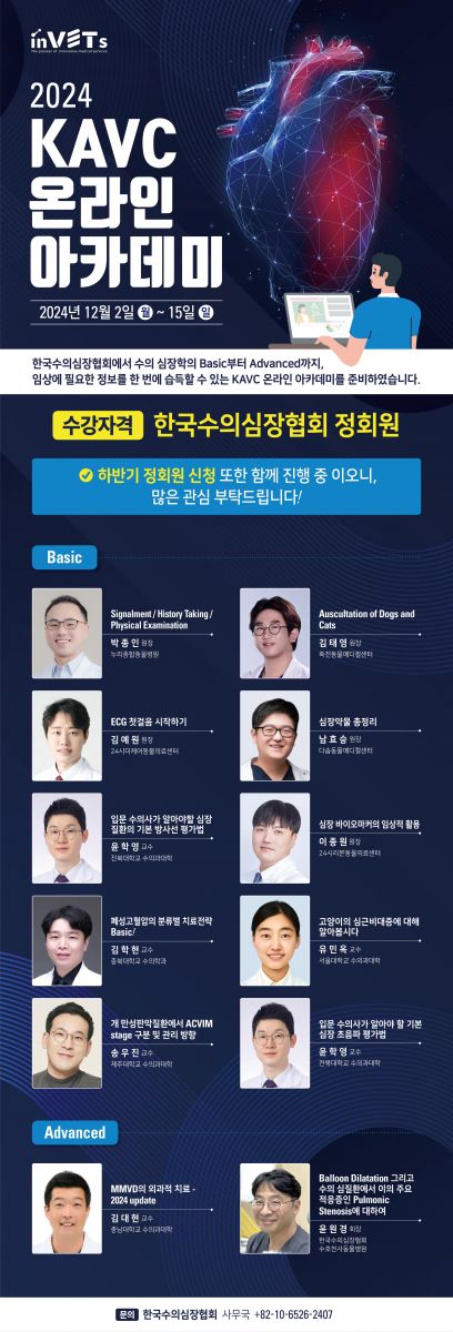 저희 한국수의심장협회(KAVC)는 국내 동물심장학의 발전의 위해 최선을 다하는 학회가 되도록 하겠습니다.